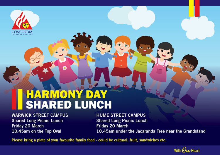 At ³ÉÈËÊÓÆµ we are blessed to have many families from many cultures. We will be celebrating these different cultures with a special Harmony Day shared lunch. Please see the details below…