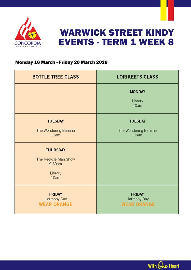 Please to view WSC's Events for Term 1 2026, Week 8.