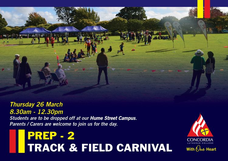 The JC Prep to Year 2 Track and Field Carnival will be held on Thursday 26 March at the Hume Street Campus. All students are to be dropped at HSC by 8.20am and will finish at approx. 12.30pm. WSC students will then return to their campus via College bus.